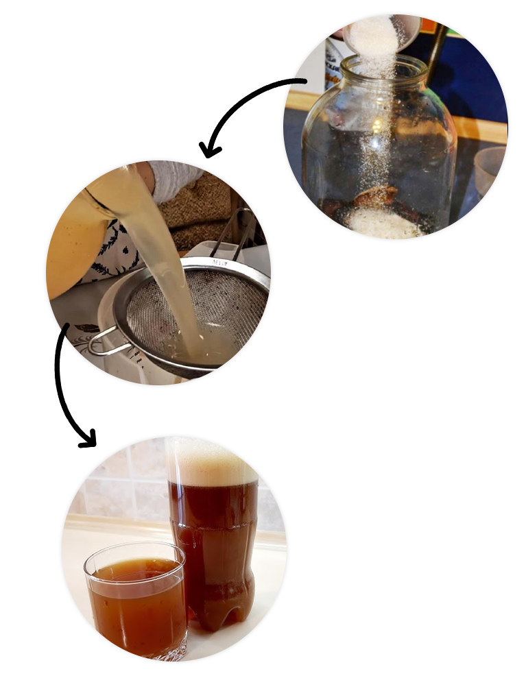 1. Вміст пакета висипати в 3-х літрову банку, залити фільтрованою або кип'яченою водою (30 ºС).